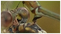A droite on note la curieuse gymnastique, espèce de "pompage" qui doit permettre la pénétration du sperme et peut-être l'élimination de celui de l'accouplement précédent... une spécialité des odonates!