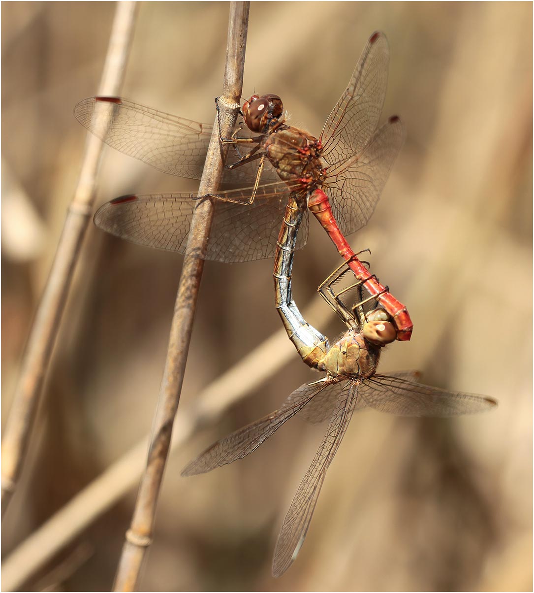 L'action se déroule sur les berges de l'étang de Péronne à Chanteloup les bois, le 20 août 2011. A cette date c'est seulement la 3° fois que j'ai l'occasion d'assister à un accouplement, les Sympétrum méridionaux ne sont pourtant pas rare dans les Mauges.