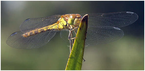La femelle ne deviendra pas rouge comme le mâle; la bande thoracique centrale changera de couleur pour se teinter de marron ocre. On trouvera cependant quelques ponctuations rouges sur l'avant du thorax, le bas de la bande thoracique centrale, l'insertion des ailes et les zones de transition entre les segments abdominaux proximaux. Les ptérostigmas verront la zone centrale sombre, visible ci dessus, se teinter de rouge sombre, mais ils conserveront leur pourtour plus ou moins blanchâtre. Les yeux perdront leur base jaune-verte pour devenir brun-clair.