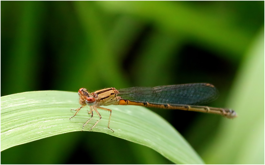 Sur le même site j'ai observé 2 Pseudagrions mâles, Pseudagrion hamoni et P. acaciae pour lesquelles l'identification n'a pas été trop difficile (muni du guide...). Mais il n'en est pas de même pour les femelles que j'avais d'abord toutes classées comme P. hamoni. Mais grâce