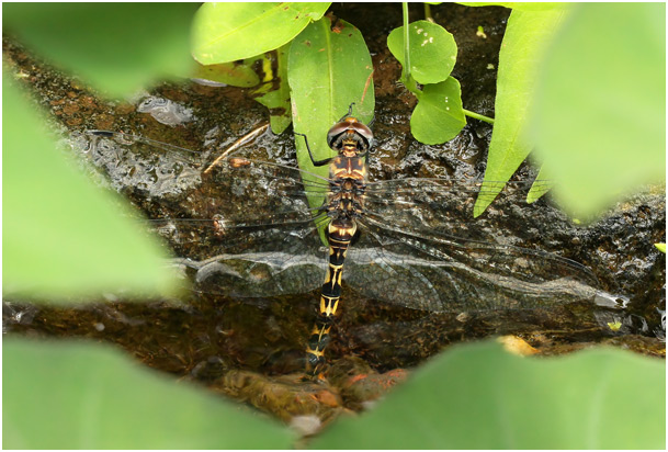 Nous avons surpris cette femelle Zygonyx torridus en train de pondre dans un endroit calme d'une ravine qui alimente l'étang de Saint Paul, le 14 janvier 2015. Il peut mesurer jusqu'à 60 mm ce qui en fait un des plus grands Libellulidae d' Europe, puisque son aire de répartition atteint le sud de l'Espagne. Afro-tropical et asiatique, son aire de répartition atteint donc le sud de l'Espagne (sans cependant montrer de tendance à l'expansion vers le nord, sans doute en raison de ses exigences d'habitat), la Réunion bien sûr, jusqu'à l'Inde. Son habitat, comme le souligne son nom anglais, consiste en rivière rapides et torrents où la femelle est censée pondre dans les racines (pour y fixer ses oeufs), ce qui n'est pas le cas ici.