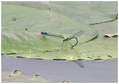 La mauvaise qualité de ces photos souligne la difficulté d'approcher Erythromma najas. Il n'est sans doute pas tellement plus craintif que les autres coenagrionidaes mais il se positionne presque toujours sur les nénuphars, à distance de la berge et il est donc particulièrement bien placé pour voir approcher le photographe.