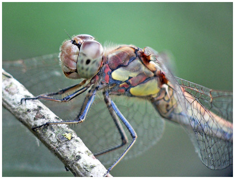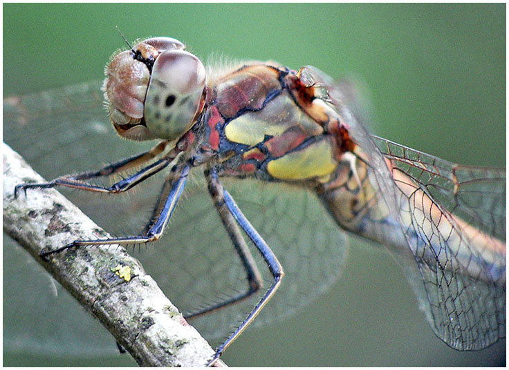 Les faces latérales du thorax apparaissent plates, bien marquées par 2 bandes jaunâtres limitées par des sutures noires.