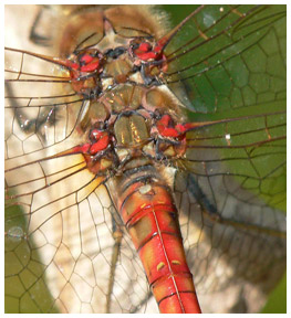 Les pattes ne sont pas véritablement striées; en tout cas leur aspect n'est pas noir comme pour sanguineum, par exemple.