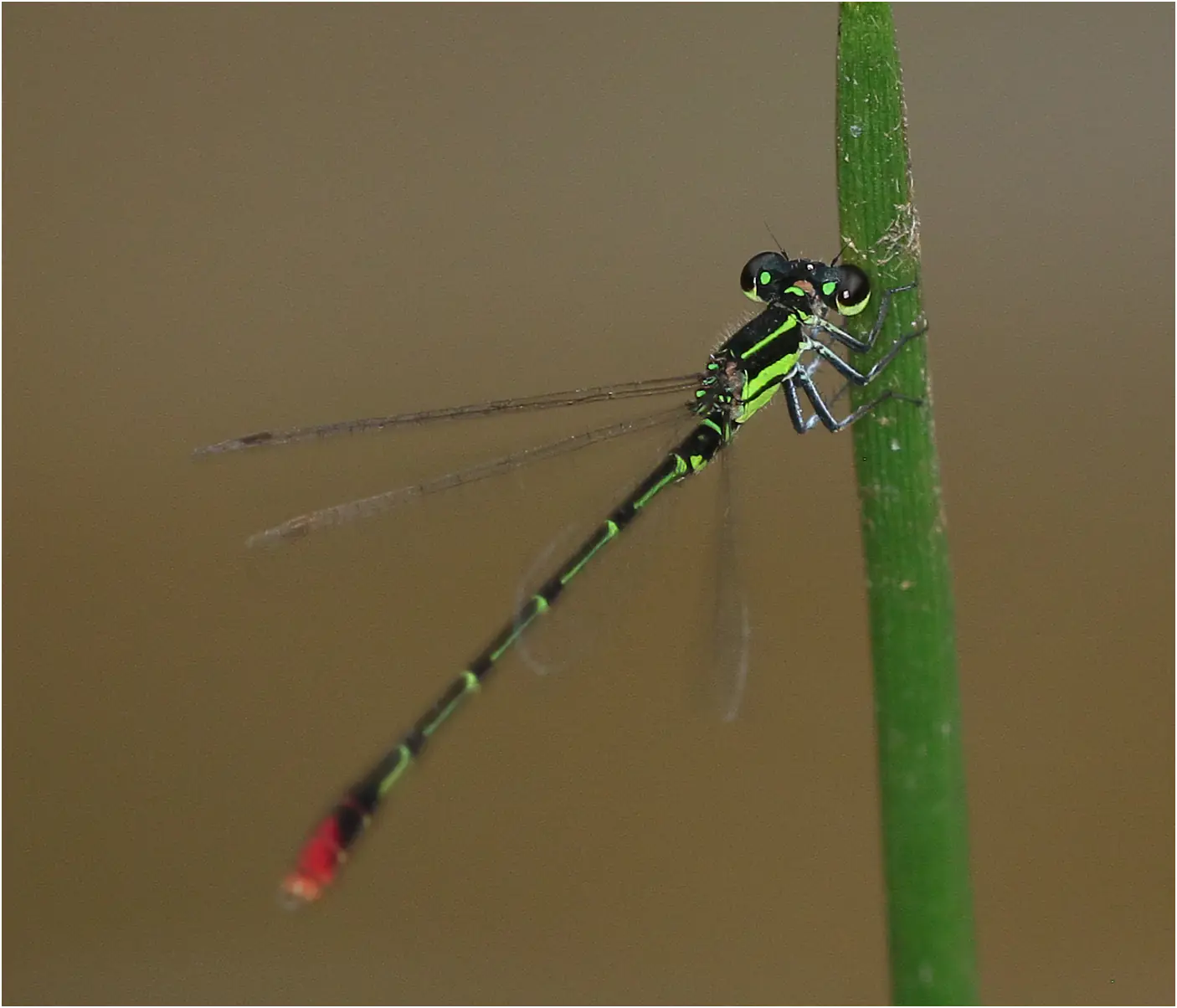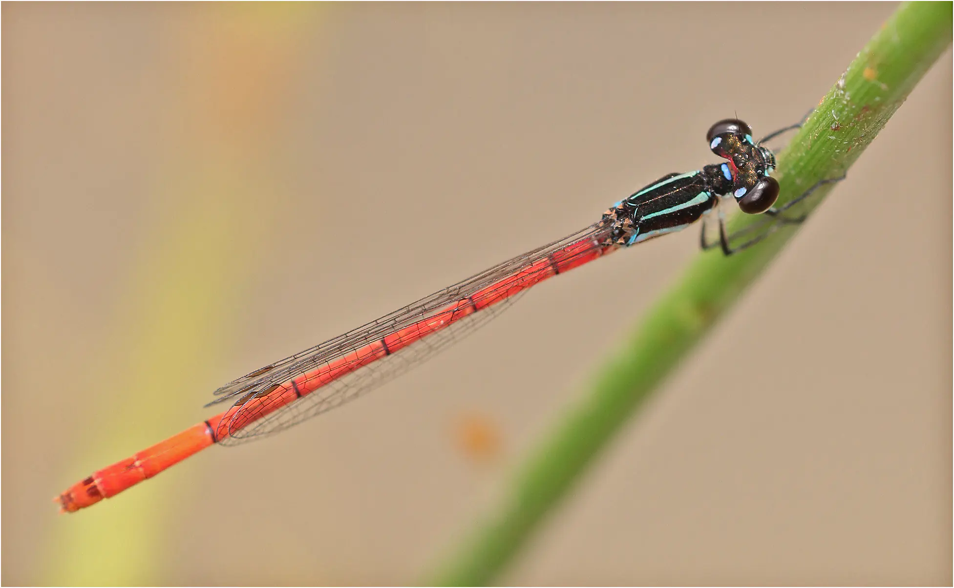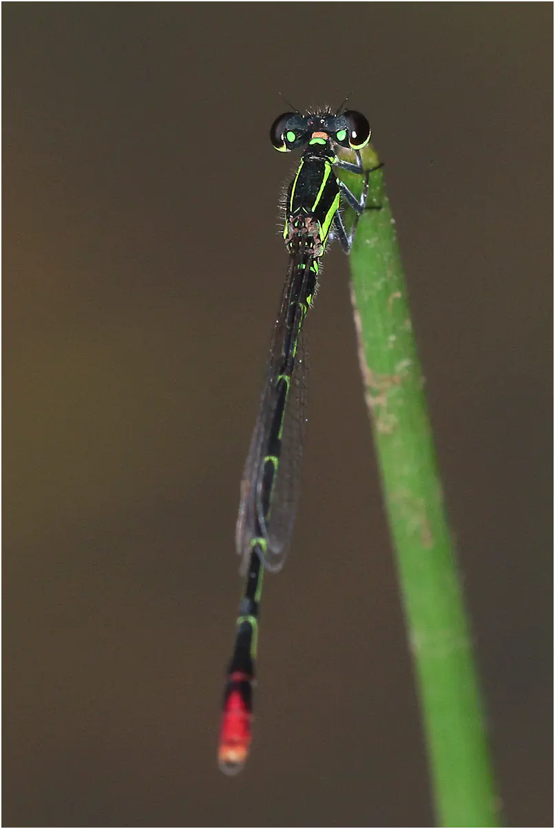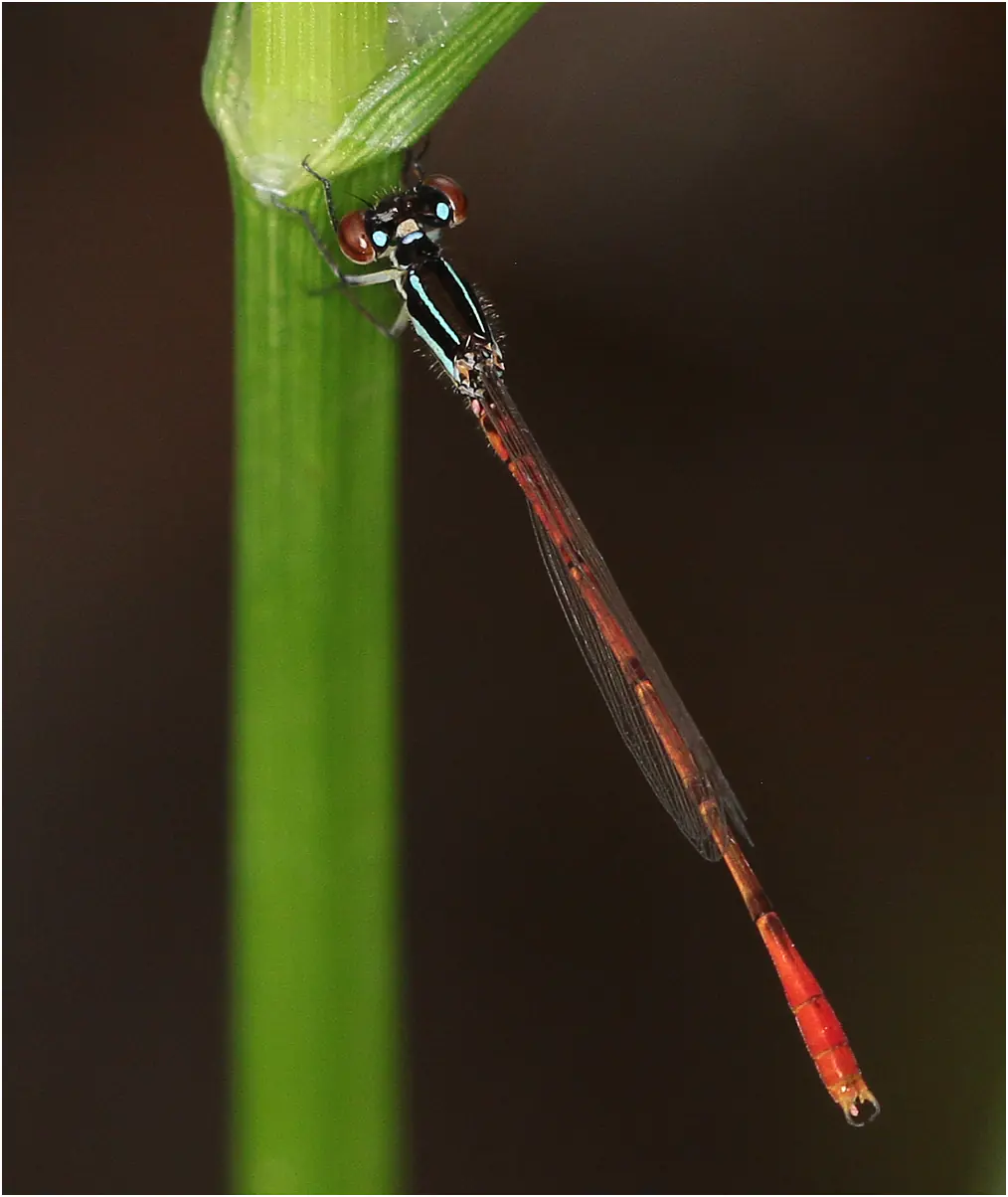 Je l’avais donc déjà rencontré en Namibie, et dans la page consacrée à cette espèce, je précisais que Fraser, dans sa description originale (1) de l’espèce, donne un abdomen de 16 mm ; il mesurerait à peine plus de 20 mm au total ! Agriocemis forcipata est un peu plus grand.
