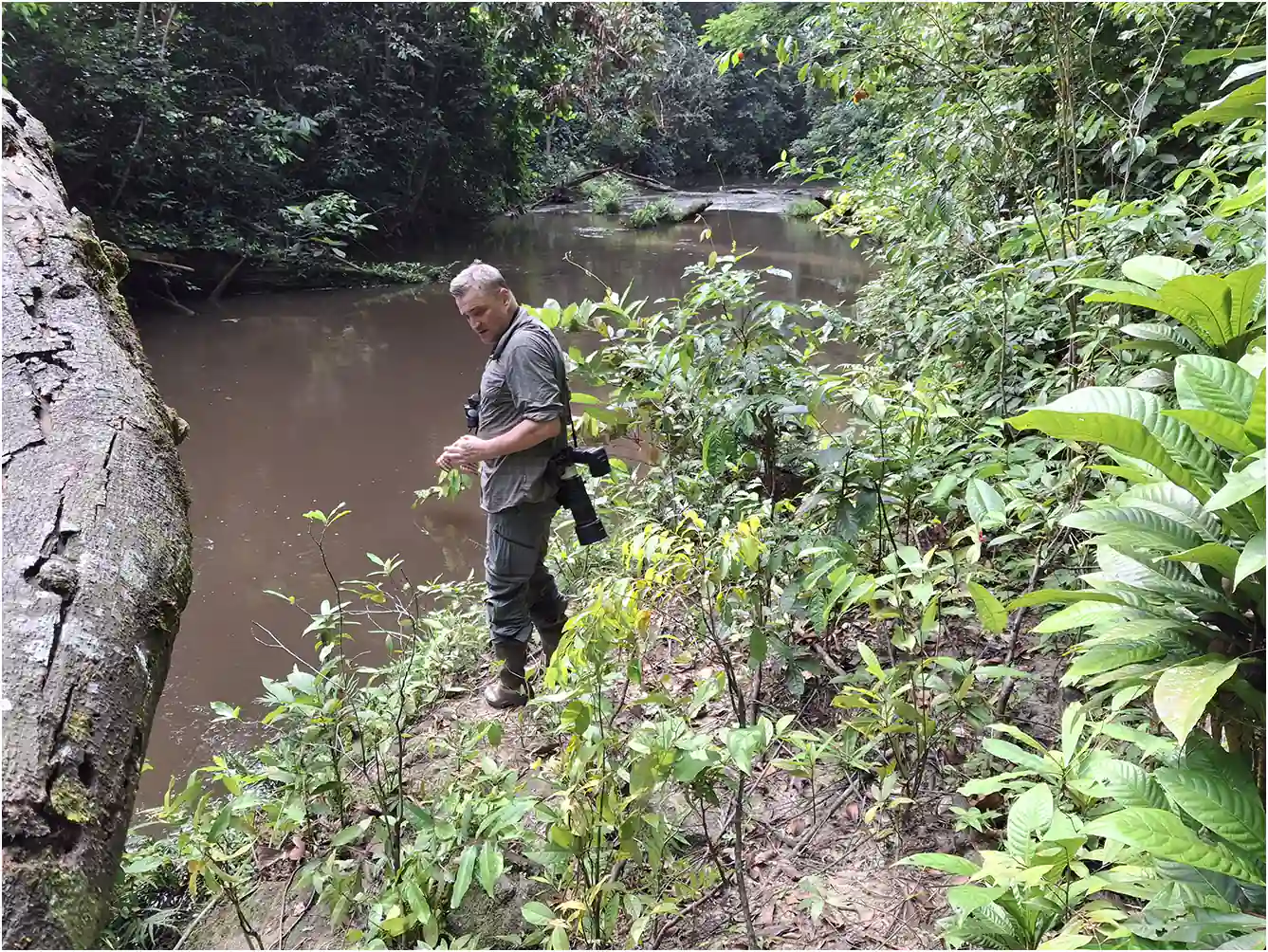 Si toutes les photos de cette page ont été prises au même endroit, en forêt, le long de la rivière Ankasa, dans un des rares endroits accessibles où la berge était dégagée et pas trop en pente, nous avons également rencontré cette espèce autour d’un grand étang, près de Cape Coast. Deux milieux très différents et seul le premier est cité dans ADDO.