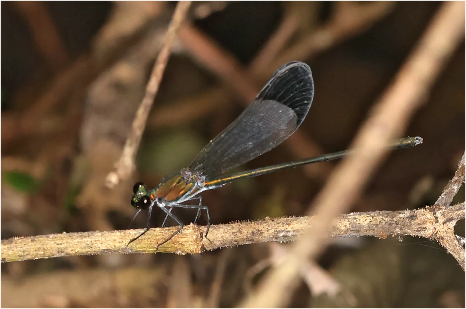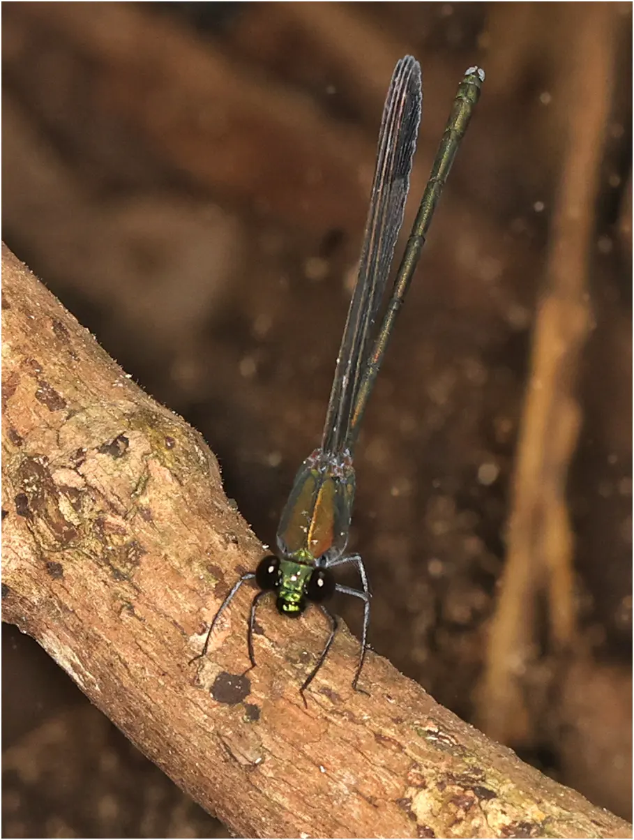 Nous avons rencontré Sapho bicolor à plusieurs reprises, mais il s’est avéré impossible à approcher malgré toutes mes tentatives ; je pense qu’il décollait dès que j’arrivais à 5 mètres de lui. Et pas de chance, j’utilisais encore ce jour un Full Frame, qui fait paraître le sujet encore plus éloigné. J’en suis très fâché car c’est un odonate magnifique et mes photos ne lui rendent pas hommage.