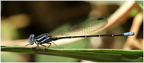 Non seulement les ailes sont tenues au dessus de l'abdomen mais les Argia adoptent souvent la position "tête en bas", l'abdomen plus haut que la tête.