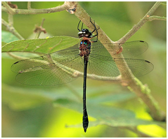 Le 28 août 2012 sur Pipeline road, ce sera la seule rencontre avec un membre de la famille des Corduliidaes, pendu à une branche à 2 mètres de haut, bien à l'ombre, au bord de la piste. Neocordulia batesi est considéré comme rare et habite les ruisseaux et rivières de forêt. On le rencontre du Mexique au Brésil.